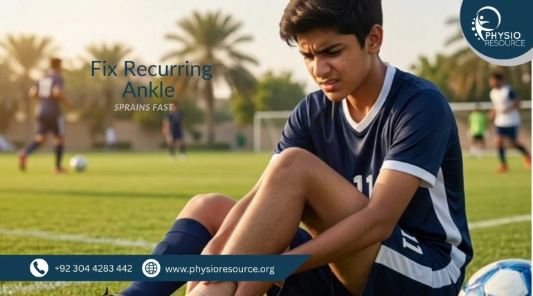 If your teenage footballer keeps twisting the ankle again and again rest alone is not enough. They need targeted physiotherapy to fully heal ligaments restore balance and prevent long-term instability. This is because recurrent ankle sprains happen when the ankle becomes weak, unstable and poorly coordinated after the injury. Without rehab it keeps happening. The expert guide from Physio Resource (best physiotherapy clinic in Gulberg Lahore) proves effective methods for ankle sprain treatment in Gulberg Lahore.